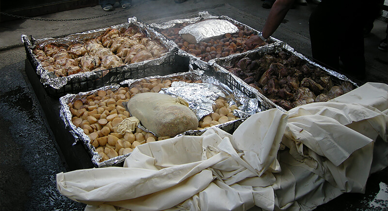 The Māori cook kai riwai—potatoes baked in a hāngī, their traditional earth oven. They heat stones with fire, bury food in baskets, and cover everything with wet clothes and earth. After hours of slow steaming, the spuds come out smoky and soft with hints of wood and soil.