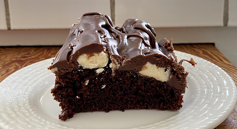 Until it’s sliced open, you can never guess what’s inside. This Arkansas favorite hides its layers of chocolate custard, cream cheese, and sometimes vanilla pudding under a thick whipped cream topping, all in a pecan shortbread crust. Its playful name is a tribute to the old Southern saying “playing possum,” meaning to fake you out.