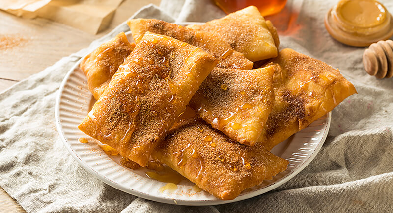 These puffy fried pillows are equally welcome at the start or end of a meal in New Mexico. They’re often drizzled with honey or rolled in cinnamon sugar. But locals also stuff them with savory fillings or use them to mop up spicy chile sauces.