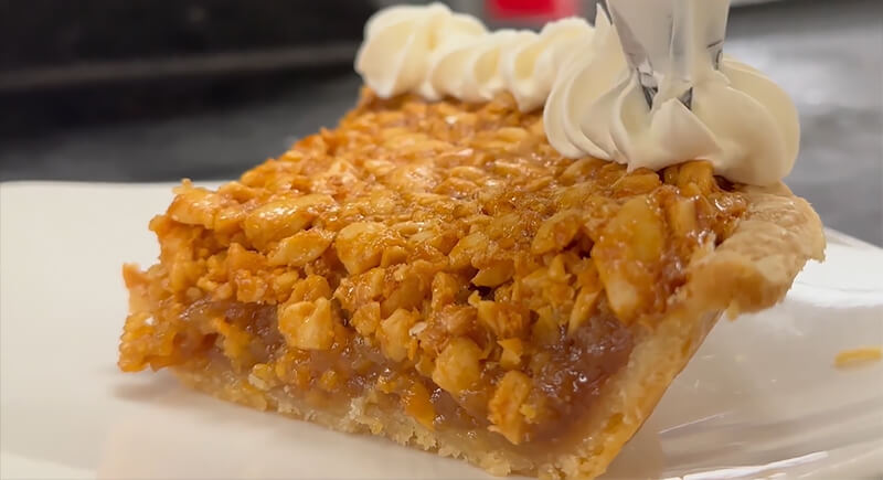 This pie used to be considered too humble for the spotlight—until Virginia peanuts got fancy. Now, chopped peanuts join corn syrup, butter, and eggs in a gooey, golden pie baked into a flaky crust. A slice pairs beautifully with ice cream.