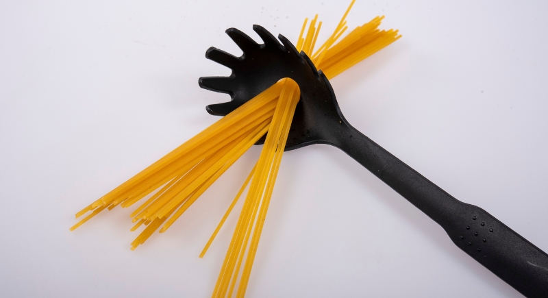 You can use the hole in a spaghetti spoon to measure out one serving of dry spaghetti. Just fit enough uncooked noodles through the hole until it’s full—that’s about one serving (roughly 2 ounces or 56 grams). This trick helps you cook the right amount and avoid wasting pasta.