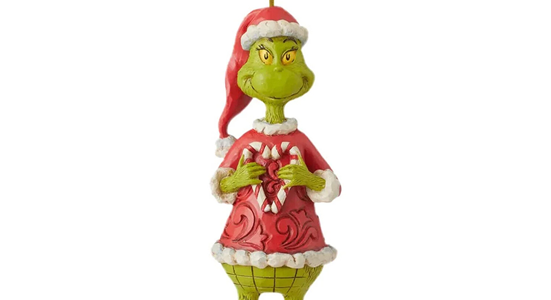 Add a touch of cheeky holiday fun with this bold Grinch ornament, which showcases the character’s signature smirk and bright green charm. The detailed finish stands out beautifully on any branch, giving your tree a lively pop. It’s an affordable way to bring a bit of mischief to your Christmas decorating.