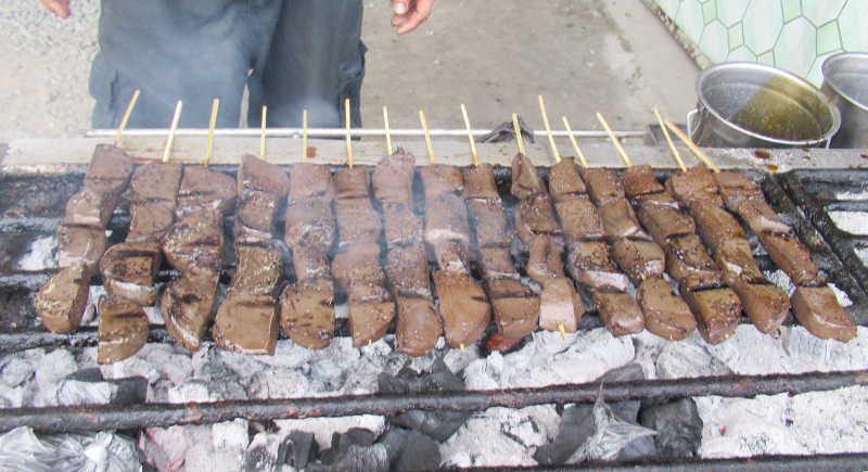 On the Philippines streets, ordering Betamax doesn’t get you a movie—it gets you skewered cubes of grilled pork or chicken blood. The snack is named after its shape, which resembles a Betamax video cassette. Vendors cook it on open grills and often serve it with vinegar and chili.