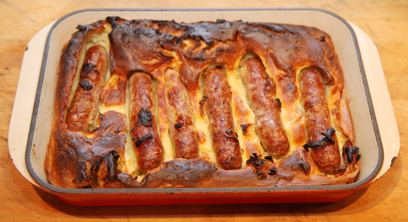 British food has a knack for dramatic titles. Toad in the Hole features sausages baked into Yorkshire pudding batter. The name may refer to how the sausages stick out like toads peeking from holes. Some say the term originated in the 18th century and has more to do with golf than reptiles.