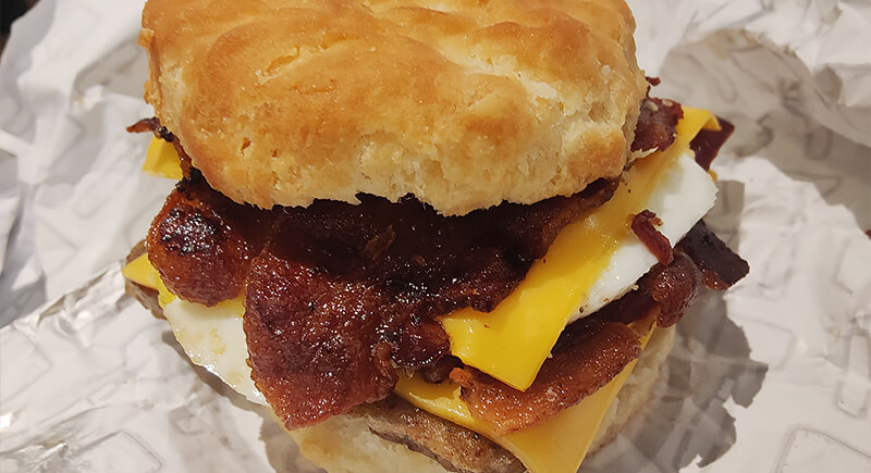 What helps this sandwich stand out is balance. The egg is fresh-cooked, the bacon is crisp, and the English muffin toasts nicely without getting too dry. It’s light but satisfying, especially when warm. Though the cheese isn’t always noticeable, the bacon quality gives Wendy’s an edge over competitors.