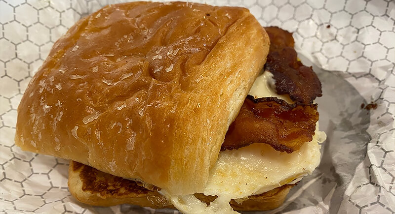 The biscuit takes over this sandwich. It’s big, dry, and too fluffy for what’s inside. The bacon, egg, and cheese get lost in the bulk, and without a sauce, the whole thing feels off balance. You finish it wishing the bread had stepped back and let the rest of the sandwich show up.