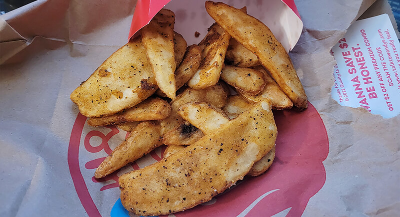 Wendy’s potato wedges easily outshine most fast-food breakfast sides. They’re thick-cut and hold seasoning well: garlic, pepper, and a hint of onion powder. They’re not greasy and still taste good after cooling down. They’re also one of the best-value menu items.