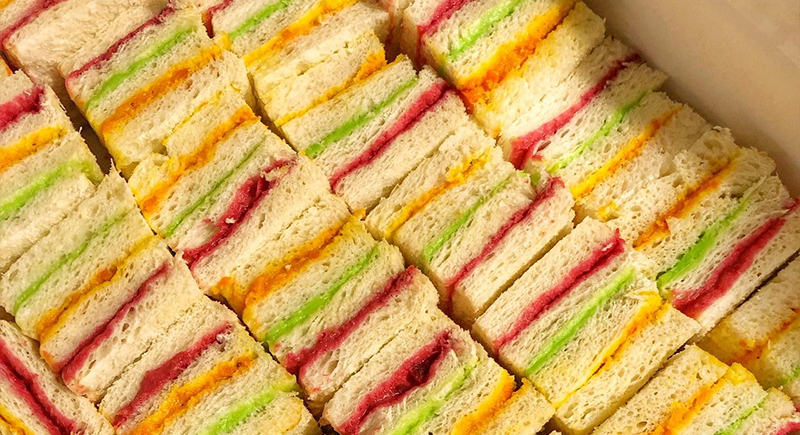 Ribbon sandwiches were for special occasions, like baby showers, church receptions, or, if someone was trying, a work luncheon. They had thin layers of white and wheat bread stacked with fillings like ham spread or egg salad, sometimes dyed pastel or trimmed neatly.