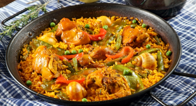 In Valencia, Spain, paella was originally a farmer’s dish made with chicken and rabbit. Over time, it became a symbol of Spanish cuisine. Saffron not only turns the rice golden but also perfumes the entire pan. What diners look forward to most, however, is the socarrat—the crunchy bottom layer prized for its texture. Today, paella remains a meal meant for sharing, eaten straight from the wide, shallow pan.