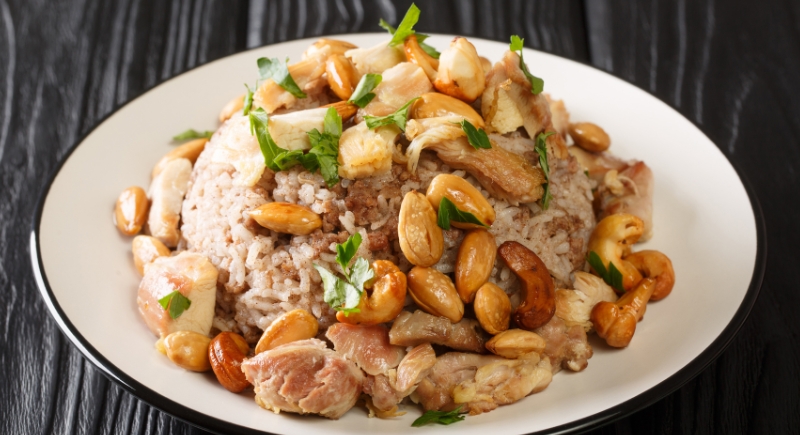 In Lebanon, rice often shares the pot with thin strands of toasted vermicelli. The pasta turns golden before it’s simmered with the grains in chicken stock, giving the dish a warm, nutty flavor. Some cooks fold in shredded chicken to turn it into a meal, while others serve it alongside slow-cooked stews. Either way, it moves easily between main course and side dish, a quiet staple on many family tables.