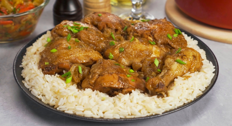 Adobo is a tangy chicken dish from the Philippines simmered in vinegar, soy sauce, and garlic. When rice cooks in the same pot, it soaks up the bold flavors, cutting prep time in half. This version captures tradition while adapting to busy schedules. Vinegar adds brightness, soy sauce brings sodium and depth, and chicken provides protein. It’s straightforward comfort food that fits modern life without losing its cultural roots.