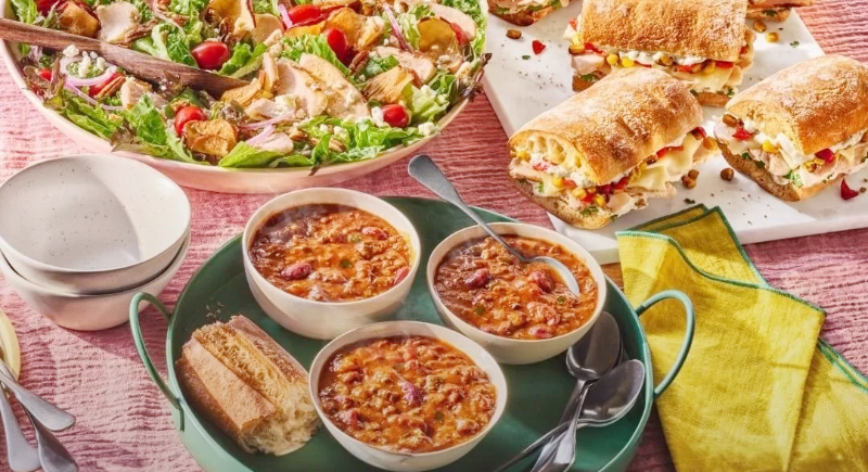 Panera’s Family Feast includes four half-sandwiches, one whole salad, one group soup, and a baguette. At $36, it’s pricier than most, but it has fresher ingredients and still serves four comfortably.